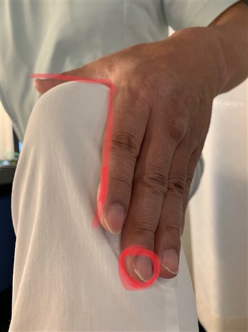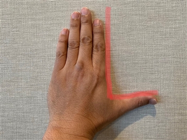 写真のように人差し指と親指のラインが90度になるように手を作ります。