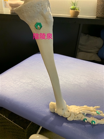 その形のまま膝を軽く曲げ、お皿を包むように手のひらを添えたとき中指の先が当たる辺りにツボがあります。押してみると周囲と違う感覚があります。